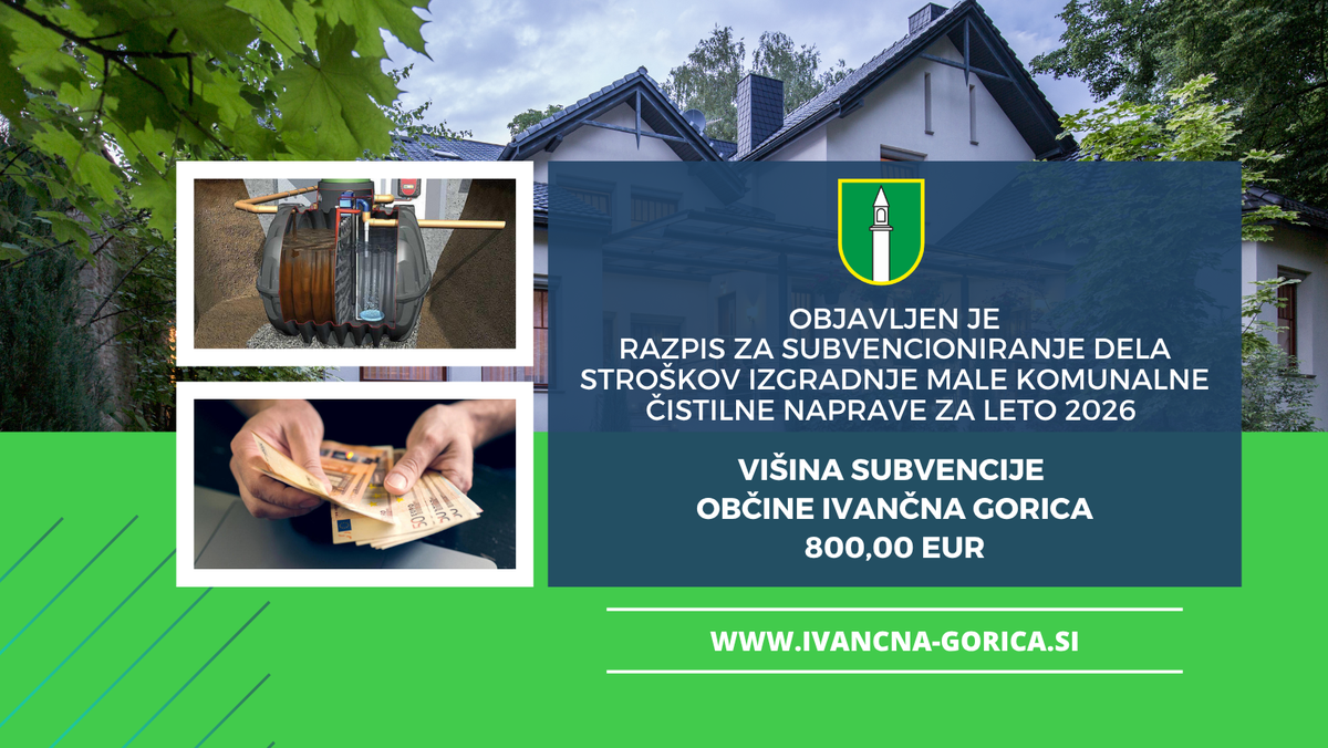 Javni razpis za subvencioniranje dela stroškov izgradnje male komunalne čistilne naprave v Občini Ivančna Gorica za leto 2026