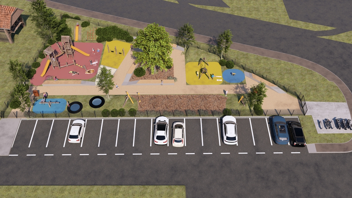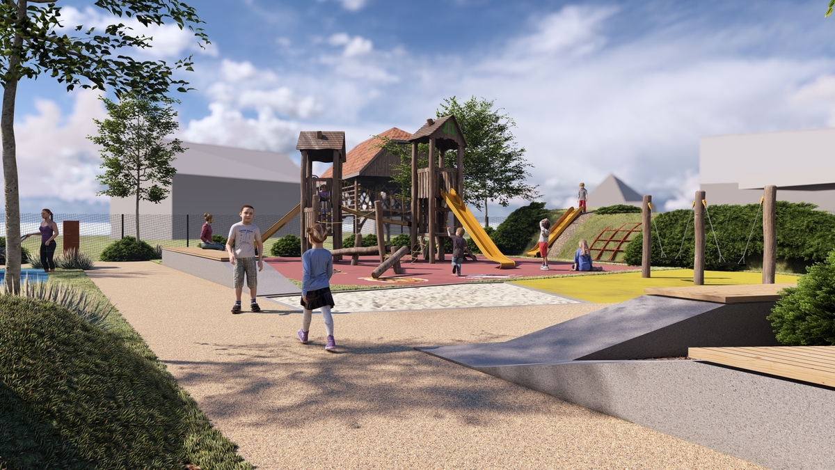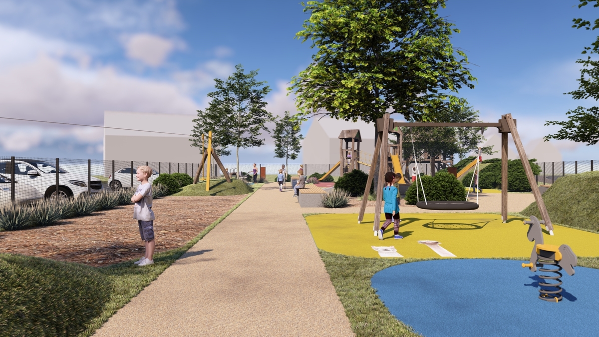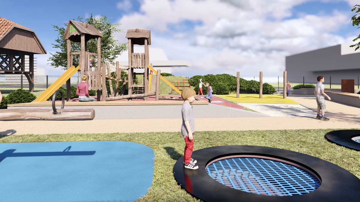 Novo otroško igrišče bo obsegalo 710,50 m² bruto tlorisne površine in bo ustrezno ograjeno s panelno ograjo. Znotraj ograjenega območja bodo umeščene igralne površine z igrali – gugalnice, večji igralni stolp, vzmetno igralo, tobogan, mreža za plezanje, talni trampolini, zip line dolžine 17 m. Igralne površine bodo izvedene v tartanski podlagi, sprehajalna pot pa v barvnem drenažnem betonu. Na igrišču bodo postavljene betonske klopi, pitnik, drevesa in grmovnice, ki bodo prostoru dodali prijetno senco in estetsko vrednost.