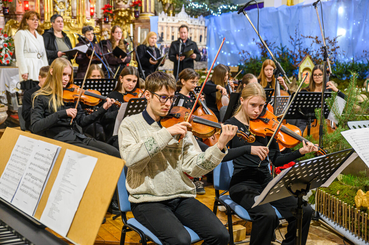 Pesmi Šentviških slavčkov, ki jih vodi Tanja Tomažič Kastelic so se pridružile še mlade citrarke: Mija Poljšak, Sara Koleša in Julija Koritnik. Del božičnega koncerta so Slavčki izvedli tudi ob spremljavi Godalnega orkestra KD Stična, ki deluje pod umetniškim vodstvom Polone Udovič. Godalni orkester je nastopil tudi z dvema samostojnima skladbama Te deum in Beli božič, dirigirala pa je Mojca Zajc, ki je prevzela tudi klavirsko spremljavo na koncertu.