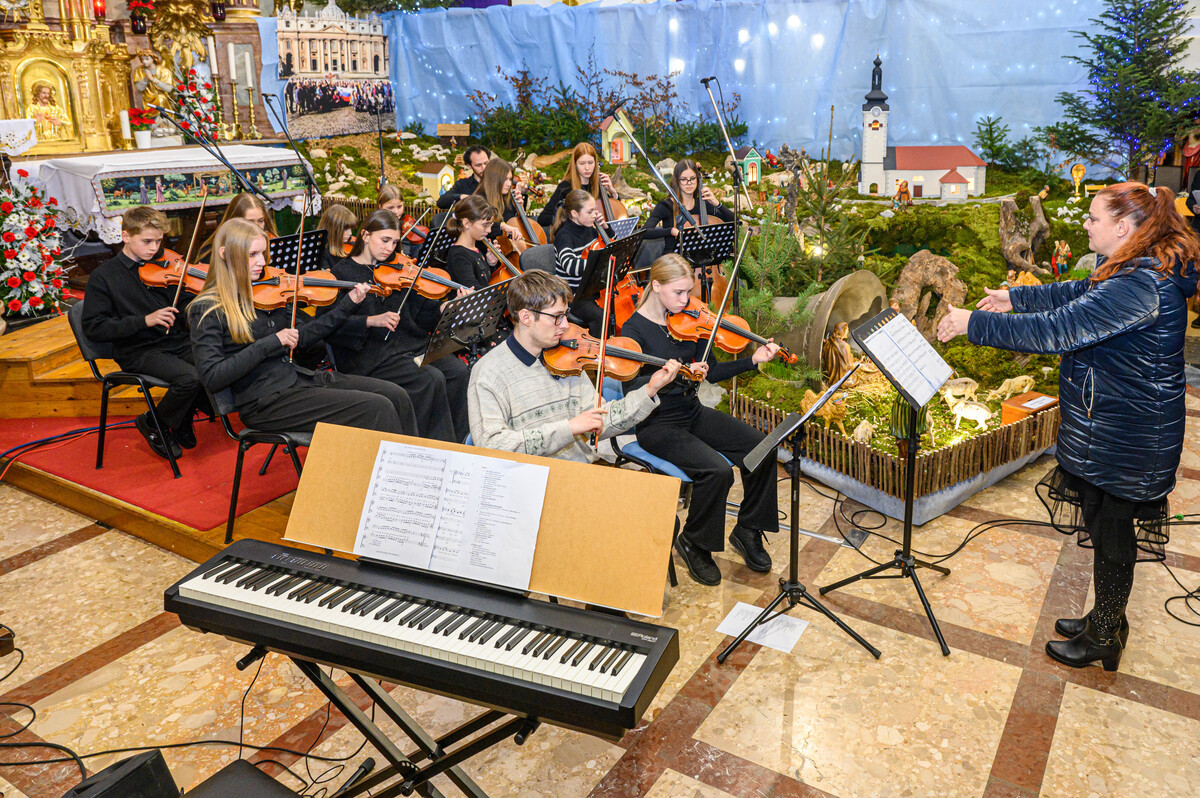 Glasbeni repertoar je bil pester in pomenljiv. Popeljal nas je v zgodovino praznovanja božiča in v številne spomine, ki nas vežejo na praznični čas. Prizorišče letošnjega koncerta v šentviški cerkvi je ponudilo tudi priložnost, da so si obiskovalci lahko ogledali izvirne jaslice, ki so jih postavili farani iz soseske sv. Petra v Dobu.