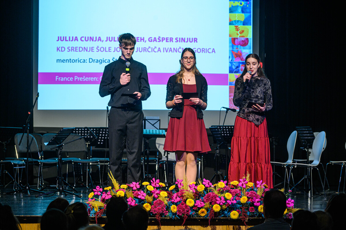 Slavnostna govornica, ambasadorka kulture Občine Ivančna Gorica Dragica Šteh, se je ob verzih Prešernove gazele vprašala, kaj lahko spodbudi semena sedanjosti, da bodo vzkalila in v prihodnosti obrodila sadove. Omenila je pomembne obletnice, ki se jih spominjamo v letu 2026, poleg Kosovelovega leta med drugim tudi 160-letnice prvega slovenskega romana Deseti brat ter 120-letnice rojstva filozofa in rodoljuba Antona Trstenjaka, ki mu je prav tako posvečeno letošnje leto. »V Prešernovem in Jurčičevem času, v prejšnjem stoletju in danes se torej pojavljajo ista vprašanja o smislu življenja, o vzrokih in posledicah in o vsem, kar predstavlja semena upanja za prihodnost.« V razmišljanju o odgovorih na ta vprašanja je izpostavila Trstenjakovo misel, ki pravi »Dobrota je sonce, ki daje rast«, ter jo povezala s kulturo kot prostorom ustvarjalnosti, solidarnosti in medsebojne skrbi do sočloveka. Njen nagovor je bil poklon različnim ustvarjalcem, zahvala vsem, ki jih podpirajo in želja, da bi nas pri vsakdanjih poteh in opravkih vodila kultura srca.