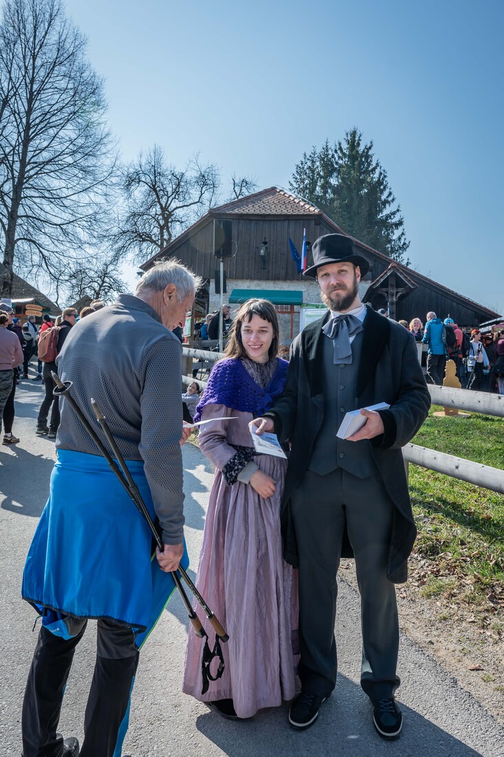 Obiskovalci so sodelovali v knjižnem kvizu ter prisluhnili kamišibaj gledališču in drugim kulturnim vsebinam, na domačiji pa so pohodnike pozdravljali Jurčičevi liki.